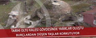 TARİHİ OLTU KALESİ GÖVDESİNDE ÇATLAKLAR OLUŞURKEN BURÇLARDAN DÜŞEN TAŞLAR TEHLİKE OLUŞTURUYOR.