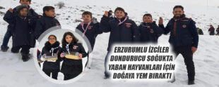 DONDURUCU SOĞUKLARIN ETKİLİ OLDUĞU ERZURUM'DA BİR GRUP İZCİ, YABAN HAYVANLARI İÇİN DOĞAYA YEM BIRAKTI.