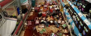 DÜZCE'DE MEYDANA GELEN 5,9 BÜYÜKLÜĞÜNDEKİ DEPREM, MARKET RAFLARINI YERE İNDİRDİ.