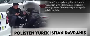 Erzurum’da meydana gelen bir kazada yaralanan kıza ıslanmaması için polis şemsiye tuttu. Görüntü sosyal...