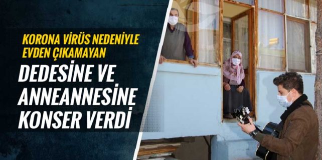 Erzurum’da bir genç, korona virüs nedeniyle evden çıkamayan dedesi ve anneannesine moral vermek için pencere kenarında mini konser verdi.