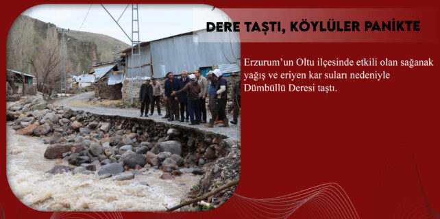 Erzurum’un Oltu ilçesinde etkili olan sağanak yağış ve eriyen kar suları nedeniyle Dümbüllü Deresi taştı.