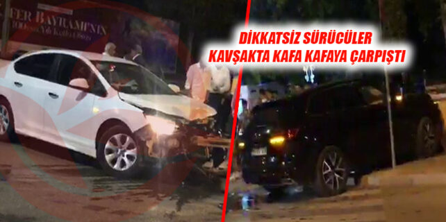 DİKKATSİZ SÜRÜCÜLER KAVŞAKTA KAFA KAFAYA ÇARPIŞTI