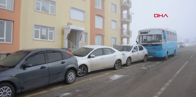 Erzurum’da direksiyon başında kalp krizi geçiren Muhsin Barkın’ın (55) kullandığı özel halk otobüsü, park halindeki 7 otomobile çarptı.