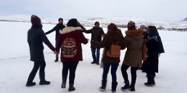 Ardahan’ın Çıldır ilçesinde de yüzeyi tamamen buz tutan Çıldır Gölü, yerli ve yabancı turistlerin ilgi odağı oldu. Çıldır Gölü üzerinde halay çeken gezgin gurubu keyifli dakikalar yaşadı.