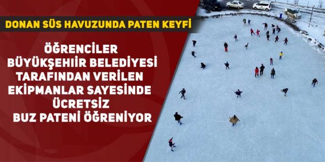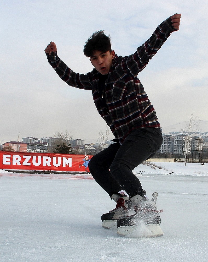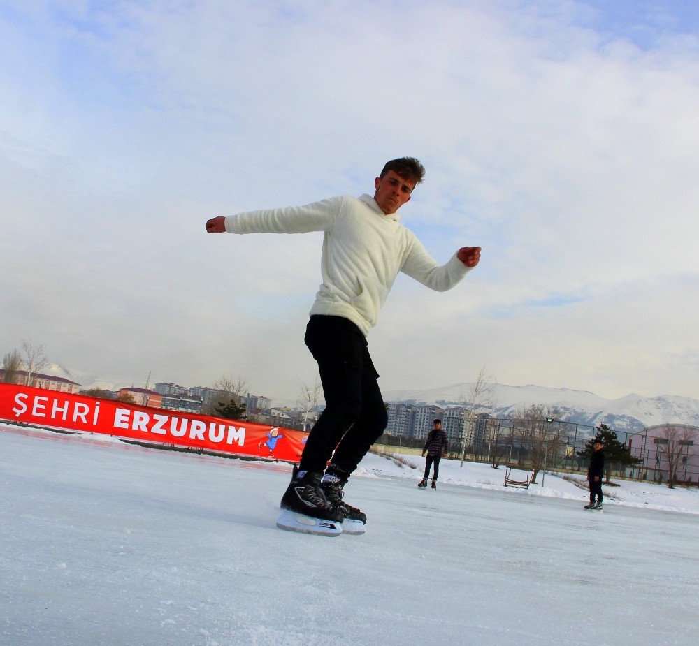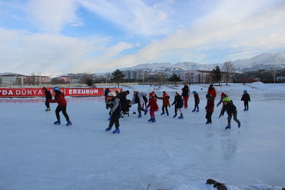 Erzurum Büyükşehir Belediyesine bağlı eğitmenler tarafından Olimpiyat Parkında yer alan 10 bin metrekarelik süs havuzunda öğrencilere buz pateni eğitimi veriliyor. Aralık ayının başlarında özel olarak dondurulan süs havuzunda gerekli önlemler alınarak yerli ve yabancı öğrencilere Büyükşehir Belediyesi tarafından verilen ekipmanlar sayesinde ücretsiz buz pateni öğretiliyor.