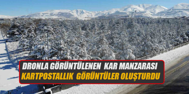 ERZURUM’DA KAR YAĞIŞI SONRASI OLUŞAN MANZARA DRON YARDIMI İLE HAVADAN GÖRÜNTÜLENDİ. AĞAÇLARIN ÜZERİNİ KAPLAYAN VE KENTİ BEYAZA BÜRÜYEN KAR, KARTPOSTALLIK GÖRÜNTÜLER ORTAYA ÇIKARTTI.