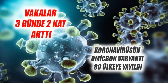 DÜNYA SAĞLIK ÖRGÜTÜ, OMİCRON MUTASYONUNUN 89 ÜLKEDE TESPİT EDİLDİĞİNİ AÇIKLARKEN, OMİCRON VAKALARININ 1,5 İLA 3 GÜN İÇİNDE İKİYE KATLANDIĞINA DİKKAT ÇEKTİ.