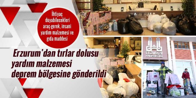 Erzurum Büyükşehir Belediyesi, Elazığ ve Malatya’daki depremzedeler için adeta seferberlik ilan etti. Büyükşehir, itfaiye ve kurtarma ekiplerinden iş makinelerine; yiyecek-içecek, mutfak malzemesi ve kıyafetten kışlık bot ve monta varıncaya kadar tırlar dolusu yardım malzemesini deprem bölgesine gönderdi.