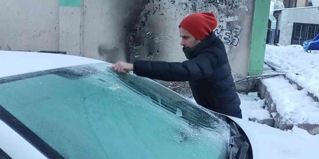 İşe gitmek için buz tutan camlarını güçlükle temizleyen vatandaş, “Gece hava sıcaklığı eksi 10’a kadar düştü. Araçlarımız buz tuttu. Sabah çilemiz yine başladı” dedi.
