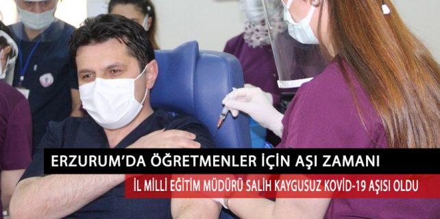 ERZURUM’DA KÖY ÖĞRETMENLERİ AŞILANIYOR… İL MİLLİ EĞİTİM MÜDÜRÜ SALİH KAYGUSUZ KOVİD-19 AŞISININ İLK DOZUNU YAPTIRDI.