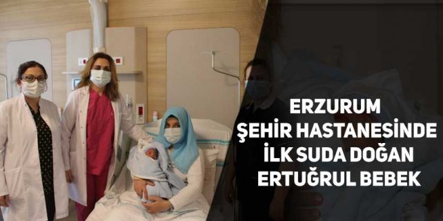 Erzurum Şehir Hastanesi’nde ilk defa suda doğum gerçekleştirildi. Dünyaya gelen bebeğe ‘Ertuğrul’ adı verildi.