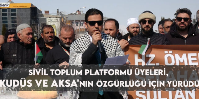 Erzurum’da Sivil Toplum Platformu (ESTP) üyeleri Cuma namazı sonrası Kudüs ve Aksa’nın özgürlüğü için yürüdü.