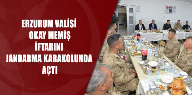 Vali Okay Memiş, iftarını Şenkaya İlçesi Kömürlü Mahallesi Jandarma Karakolu’nda açtı.