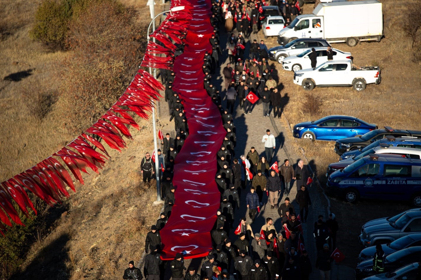 147 yıl önce Osmanlı-Rus Savaşı’nın yaşandığı Aziziye Tabyaları’nda, şehitler için anma ve o günleri yaşamak için binlerce vatandaş bir araya geldi. Erzurum’da sabah namazı sonrası Ayaz Paşa Camii’nden sala okunması ve ardından minareden tarihi çağrının yapılmasıyla başlayan anma programı, Aziziye Tabyası’nda devam etti. Tarihte “93 Harbi” olarak anılan, 1877-1878 Osmanlı-Rus Savaşı’nın en çetin muharebelerinin yaşandığı ve düşmek üzereyken ellerindeki balta, kazma, kürek ve nacaklarla savaş meydanına koşan halkın desteğiyle düşmanın yenildiği Topdağı’ndaki Aziziye Tabyaları’nda, Erzurum Valiliği ve Büyükşehir Belediyesince anma etkinliği organize edildi. Kars Kapı Şehitliği’nde bir araya gelen vatandaşlar Aziziye Tabyası’na ulaştı. Bu esnada askerler top atışı yaptı.