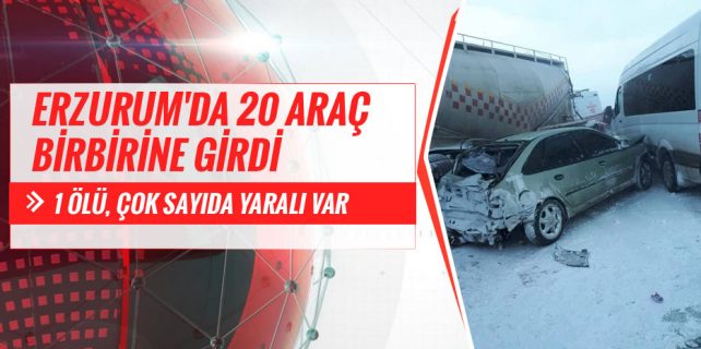 Erzurum’da buzlanmada nedeniyle meydana gelen trafik kazasında 20 araç birbirine girdi. Kazada 1 kişi hayatını kaybederken çok sayıda kişi yaralandı.