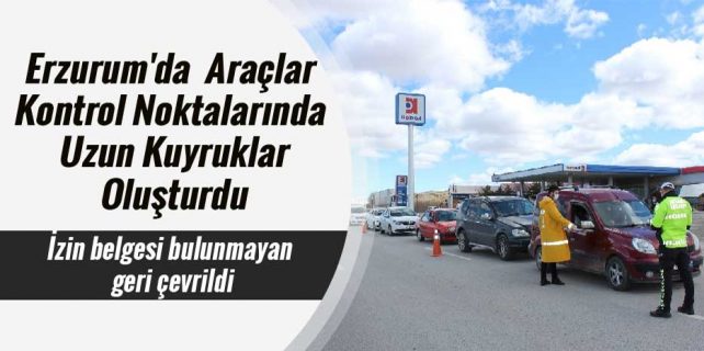 İçişleri Bakanlığının şehir giriş ve çıkış tedbirleri ile yaş sınırlamasına ilişkin hazırladığı genelgeden sonra Erzurum Polis Kontrol Noktalarında araçlar uzun kuyruklar oluşmasına neden oldu.