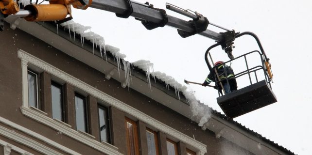 Erzurum Büyükşehir Belediyesi itfaiye ekipleri, il merkezindeki cadde, sokak ve kaldırımlarda kar temizleme çalışması başlattı. İş makineleri aracılığıyla toplanan kar kütleleri kamyonlarla şehir dışına taşınırken, çatılarda oluşan ve büyük tehlike oluşturan buz sarkıtları da itfaiye ekibi tarafından kırılıyor. Güneşin yüzünü göstermesiyle birlikte eriyen karların oluşturduğu, 2 metreye kadar ulaşan buz sarkıtlarını itfaiye aracına çıkarak kıran ekibin çalışmaları, kent sakinlerine ve sürücülere rahat nefes aldırdı. İtfaiye çalışanı, sarkıt kırma çalışması öncesi kentte anons yaparak halkı uyardıklarını, kimsenin zarar görmemesi için yoğun çalıştıklarını söyledi.