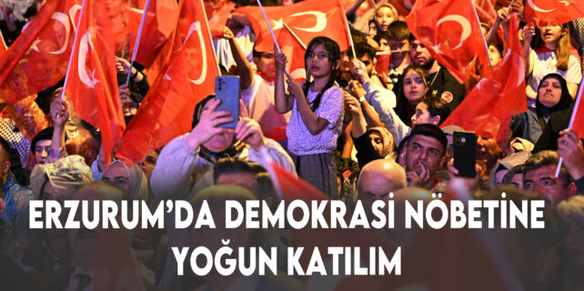 Erzurum’da demokrasi nöbetine yoğun katılım