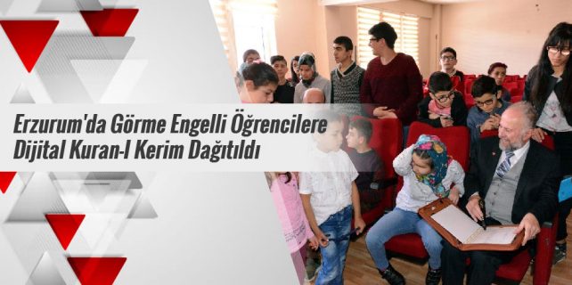 Aile ve Sosyal Politikalar Bakanlığı, Diyanet İşleri Başkanlığı, Türkiye Diyanet Vakfı, Marmara Üniversitesi İlahiyat Fakültesi ile Katar Hayır ve Yardımlaşma Derneği tarafından ortak hazırlanan dijital Kur’an setleri Erzurum’daki 12 görme engelli öğrenciye dağıtıldı.