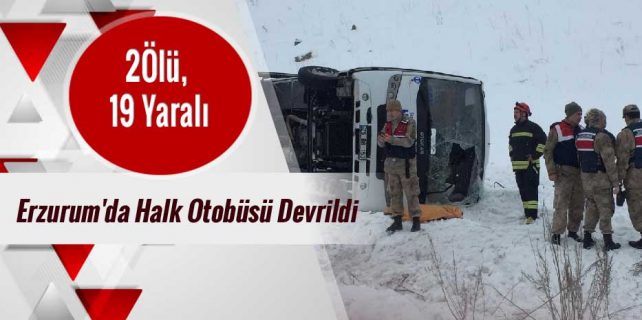 Erzurum’da halk otobüsünün devrilmesi sonucu meydana gelen trafik kazasında 2 kişi hayatını kaybederken 19 kişi yaralandı.