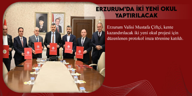 Erzurum Valisi Mustafa Çiftçi, kente kazandırılacak iki yeni okul projesi için düzenlenen protokol imza törenine katıldı.