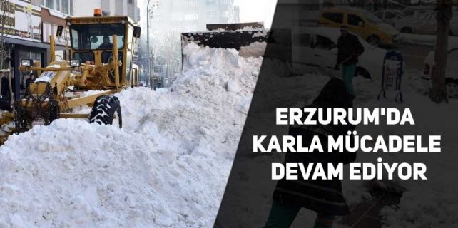 Erzurum’da etkili olan kar yağışı nedeniyle karla mücadele çalışması devam ediyor. Erzurum Büyükşehir Belediyesi Karla Mücadele ekipleri bin 500 personel ve bin araçla karla mücadelede il genelinde çalışmalarını sürdürüyor.