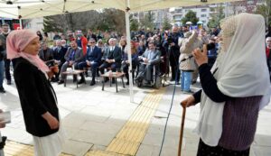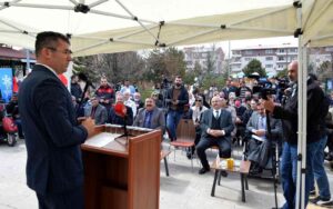 “Bizde bu şiarla vazifemizi yapmaya ve devletin bütün imkânlarını sizlere seferber etmeye gayret ediyoruz. Bizlere bu imkânları sağlayan başta sayın cumhurbaşkanımıza, bakanlarımıza ve milletvekillerimize teşekkür ediyorum. Sosyal devlet ilkesi anayasada hüküm altına alınmış çok önemli bir ilkedir. Ve ihtiyaç sahibi vatandaşların yanında olmayı gösterir. Her yıl 500 milyon TL devletimiz tarafından ihtiyaç sahibi kardeşlerimize verilmektedir. Dünyada sosyal yardımlar açısından örnek ülkeyiz. Bununla birlikte çalışmak isteyen kardeşlerimiz için de hep istihdam politikaları içerisindeyiz. Fabrika yapma derdindeyiz. Tüm vatandaşlarımızın emrindeyiz.”