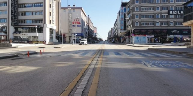 Ülke genelimde pandemi tedbirleri kapsamında uygulanan kısıtlama ile birlikte Erzurum’da cadde ve sokaklar boş kaldı.