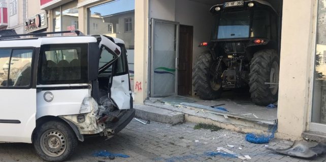 ERZURUM’UN HORASAN İLÇESİNDE KONTROLDEN ÇIKAN TRAKTÖR, 3 ARACA ÇARPTIKTAN SONRA BİR İŞYERİNE DALDI