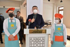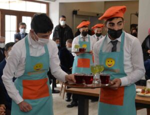 Milli Eğitim Müdürü Salih Kaygusuz, Milli Eğitim Bakanlığının özel eğitimi iyileştirme projesi kapsamında Erzurum’da Palandöken Özel Eğitim meslek okulunu 2021-2022 eğitim döneminde hizmete açtıklarını belirterek, “4 farklı alanda özel çocuklarımıza hizmet veriyoruz. Özel Eğitim okulumuzda Üreten özel çocuklar projesi kapsamında burada çalışıp uzmanlaşacağı ve eğitim alacağı mutlu Kafenin açılışı gerçekleştiriyoruz. Çocuklarımız burada halka açık hizmet verecek kafede hem kendi alanlarında gelişme fırsatı bulacak hem de ailelerine katkı sağlamış olacaklar” dedi.