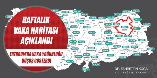 Erzurum’da vaka sayısı bir önceki haftaya göre düşüşte.