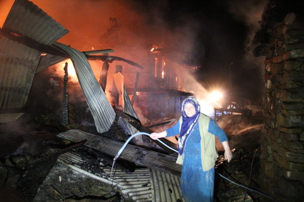 Yangında içerisinde ev, ahır, odunluk, kömürlük ve samanlık bulunan 16 yapı kullanılamaz hale geldi.