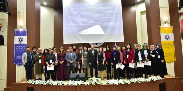 Erzurum Teknik Üniversitesi Kadın ve Aile Çalışmaları Araştırma ve Uygulama Merkez’inin himayesinde Kadın temalı I. Öğrenci Sempozyumu gerçekleştirildi. Öğrenci sempozyumunda Felsefe, Tarih, Psikoloji, Türk Dili ve Edebiyatı, İktisat, Bilgisayar ve Moleküler Biyoloji ve Genetik bölümünün öğrencilerinin katılımıyla 4 oturum olarak düzenlendi.