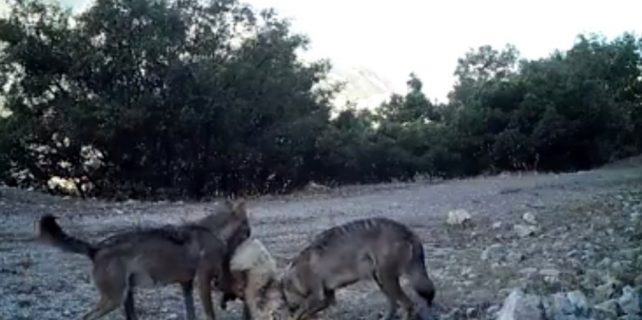 Erzincan Doğa Koruma ve Milli Parklar Şube Müdürlüğü tarafından sosyal medyada paylaşılan görüntülerde, iki kurt ve bir boz ayı olduğu görüldü.