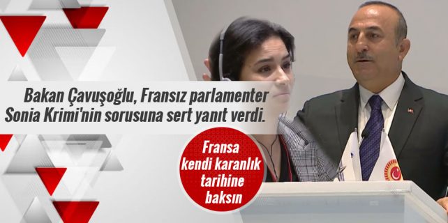 Dışişleri Bakanı Mevlüt Çavuşoğlu NATO Parlamenter Asamblesi 99. Rose-Roth Semineri’nde açıklamalarda bulundu. Bakan Çavuşoğlu, Fransız parlamenter Sonia Krimi’nin sorusuna sert yanıt verdi.