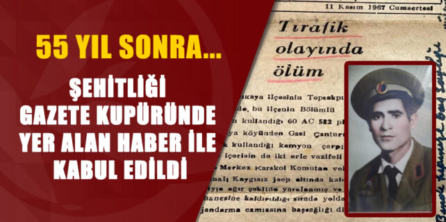 55 YIL SONRA… ŞEHİTLİĞİ GAZETE KUPÜRÜNDE YER ALAN HABER İLE KABUL EDİLDİ