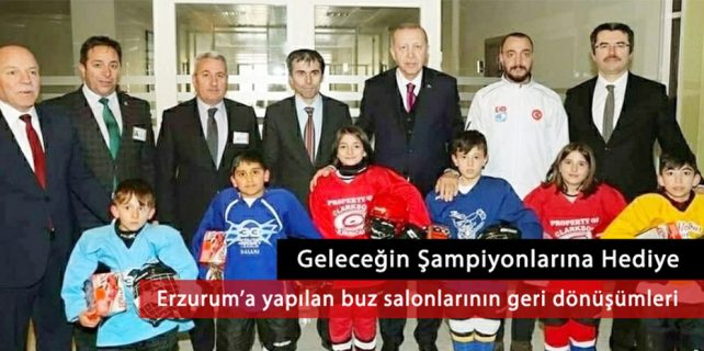 Cumhurbaşkanı Recep Tayyip Erdoğan, Erzurum Mitinginde, minik sporculara yakın bir ilgi gösterdi. Erzurum Valiliğini Ziyareti esnasında minik buz hokeyciler, Erdoğan’ı sevgi çemberine aldı. Cumhurbaşkanı Erdoğan’da geleceğin şampiyonlarına hediye verdi.