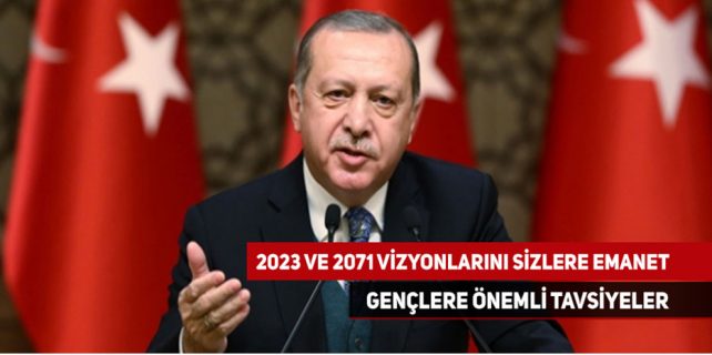Cumhurbaşkanı Recep Tayyip Erdoğan, “Türkiye’nin 2053 ve 2071 vizyonlarını oluşturma ve hayata geçirme vazifesini huzuru kalple sizlere emanet ediyorum.” dedi.