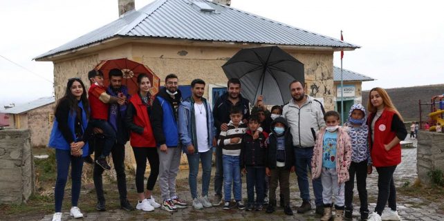 Palandöken Gençlik Merkezi Gençlik Lideri Erhan Tuna, ‘Gülmek her dilde aynı anlamı ifade eder’ sloganıyla çıktıkları yolda Börekli köyünün minik yüreklerini sevindirdiklerini söyledi.