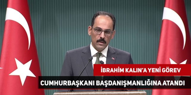 Cumhurbaşkanı Recep Tayyip Erdoğan imzasıyla yayımlanan kararlara göre, Cumhurbaşkanlığı Başdanışmanlıklarına Doç. Dr. İbrahim Kalın ve İsrafil Kışla atandı. Kararla birlikte Cumhurbaşkanlığı Başdanışmanlığına atanan Kalın’a “Büyükelçi” unvanı verildi.