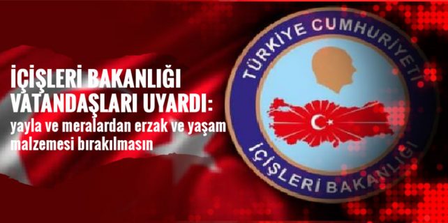 İçişleri Bakanlığı, yayla sezonunun bitmesiyle birlikte vatandaşların bu tür yerleşim yerlerinde erzak bırakmaması konusunda bir uyarı yazısı yayımladı.