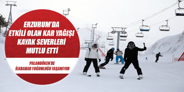 İlkbaharda yağan karla kayak sezonunun uzadığı Erzurum’un Palandöken Kayak Merkezi’nde kış turizmi devam ediyor.