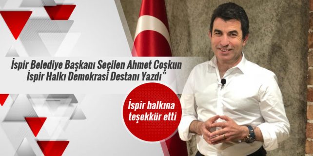 Sağduyulu İspir halkının güzel bir demokrasi örneği sergilediğini kaydeden İspir Belediye Başkanı Ahmet Coşkun, “Doğduğum, büyüdüğüm toprakların güzel insanlarına canı yürekten teşekkür ediyorum. Güzel İspir’imizin güzel insanları tüm dünyaya en güzel demokrasi örneklerinden birini sergiledi” diye konuştu.