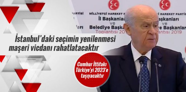 MHP Genel Başkanı Bahçeli, “Büyükçekmece ve Maltepe’deki iddialar yenilir tutulur değildir. Bize göre İstanbul’da seçimin yenilenmesi maşeri vicdanı rahatlatacaktır.” dedi.