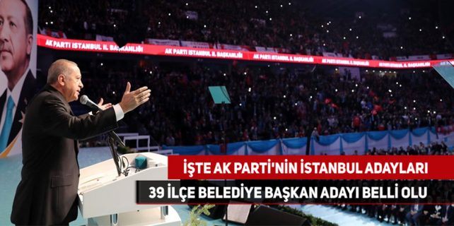 Cumhurbaşkanı Erdoğan, 31 Mart 2019’da yapılacak yerel seçimlerde, partisinin İstanbul Büyükşehir ile ilçe belediye başkan adaylarını açıkladı.