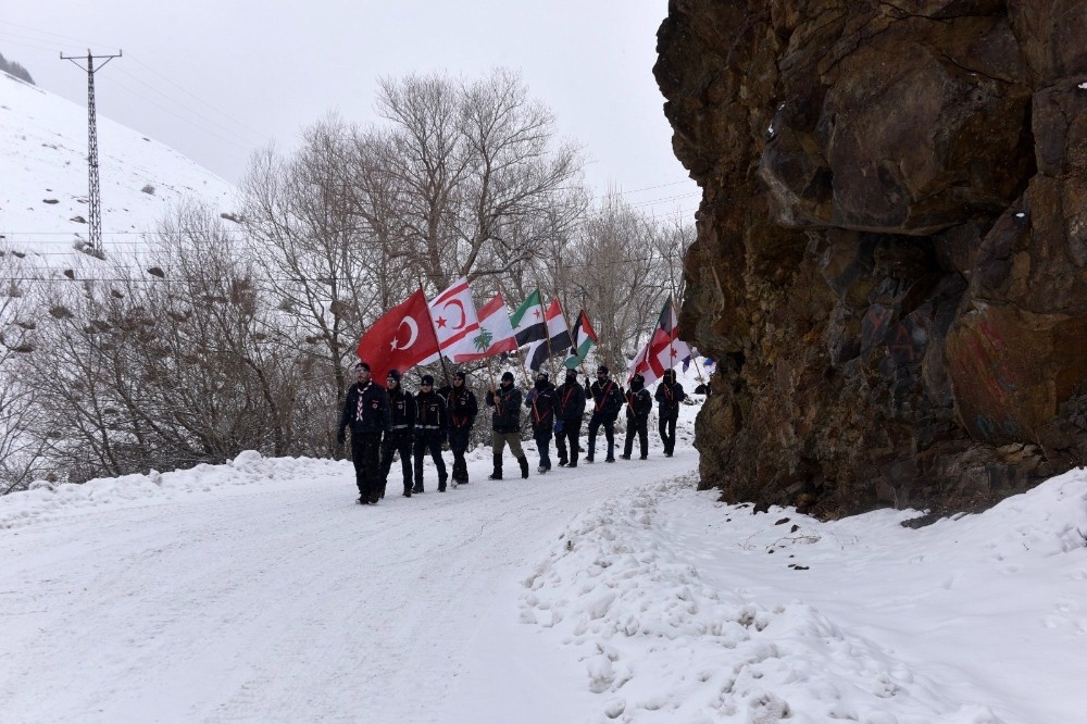 İzciler, Sarıkamış Şehitleri İçin Karlı Dağları Aşarak Eksi 20 Derecede Çadırda Sabahladı