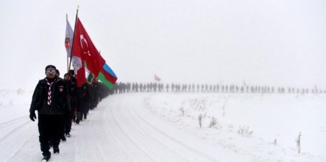 TÜRKİYE İZCİLİK FEDERASYONU TARAFINDAN 14’ÜNCÜSÜ DÜZENLENEN SARIKAMIŞ ALLAHUEKBER DAĞI ŞEHİTLERİNİ ANMA MİLLİ BİLİNÇ KAMPI, TÜRKİYE’NİN 23 ŞEHRİ İLE 11 ÜLKEDEN YAKLAŞIK 258 İZCİNİN KATILIMIYLA GERÇEKLEŞTİRİLDİ. İZCİLER, SARIKAMIŞ ŞEHİTLERİ İÇİN KARLI DAĞLARI AŞTI.