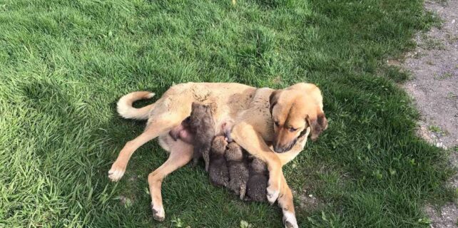 JANDARMA KÖPEĞİ ‘SARI KIZ’ 4 TİLKİ YAVRUSUNA SÜT ANNESİ OLDU