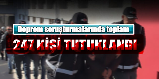 Kahramanmaraş merkezli depremlerde yıkılan ya da imara aykırı değişiklik tespit edilen binalarla ilgili soruşturmalarda 93’ü müteahhit, 123’ü yapı sorumlusu, 13’ü yapı sahibi ve 18’i binada değişiklik yapan olmak üzere 247 şüpheli tutuklandı.
